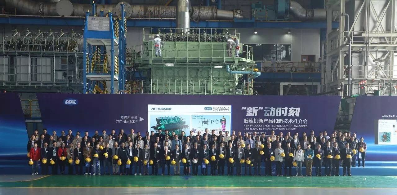 当天,来自中船集团、中远海运集团、中外运长航集团、交银租赁公司、MAN公司、WinGD公司、ABS船级社、CCS船级社、三井造船株式会社等业界知名船东、造修船企业、船级社、科研院所代表共计120余位来宾参加了本次推介会。推介会现场,来宾们还共同见证了7RT-flex50DF主机和带SCR的6RT-flex50D主机动车。